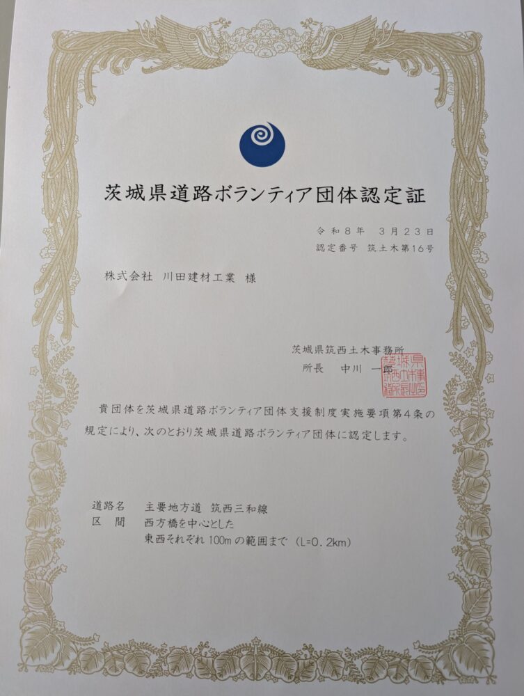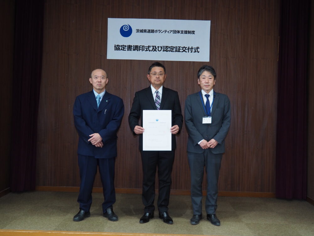 茨城県道路ボランティア団体に認定されました!
